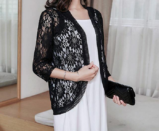 春 夏 レディース カーディガン 大きいサイズ トップス オフィス ショール ジャケット 大きいサイズ ショート丈 レース 花柄 冷房対策 薄手 5分袖 羽織り デート リゾート 海 プール かわいい おしゃれ 韓国 きれいめ プチプラ KR-5-130 | dress_sugar_moon