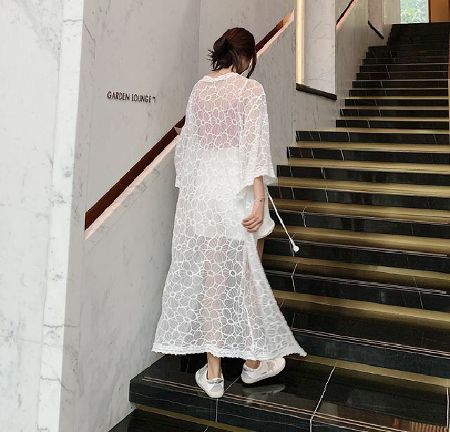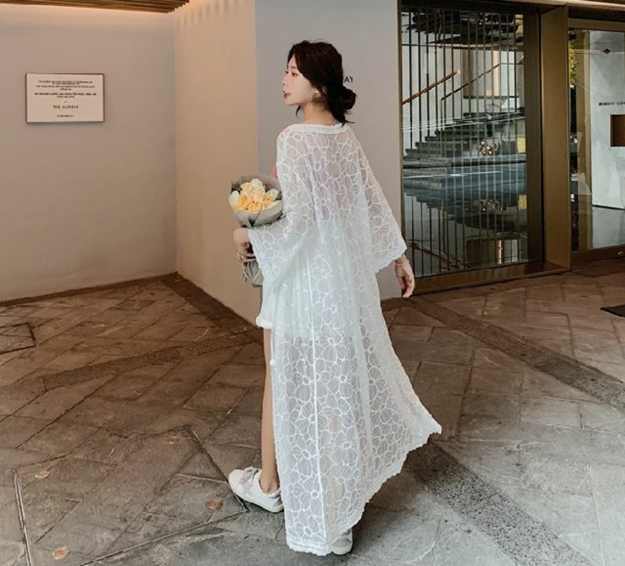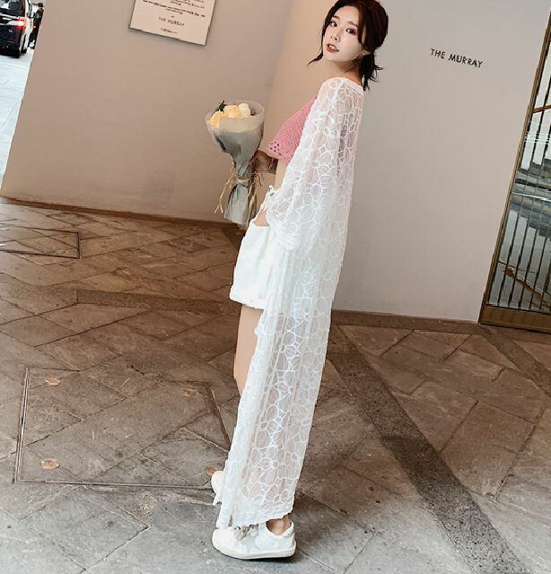 春 夏 レディース カーディガン シフォン コート ロング丈 レース 透かし 冷房対策 薄手 長袖 羽織り デート リゾート 海 プール かわいい おしゃれ 韓国 きれいめ プチプラ KR-5-134 | dress_sugar_moon