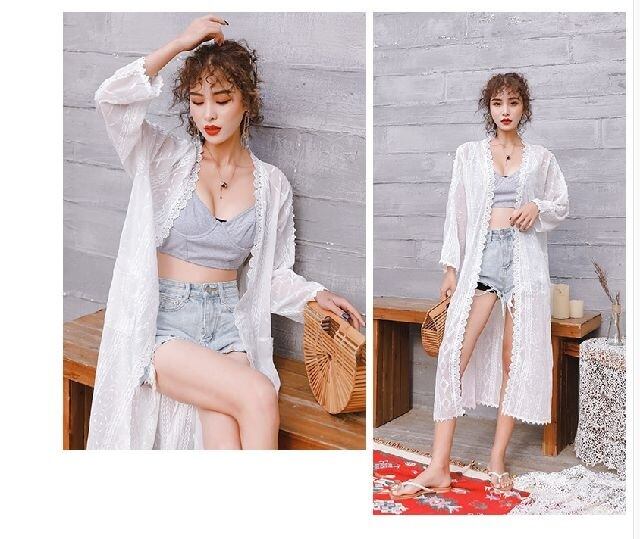 春 夏 レディース カーディガン シフォン コート ロング丈 レース 透かし 冷房対策 薄手 長袖 羽織り デート リゾート 海 プール かわいい おしゃれ 韓国 きれいめ プチプラ KR-5-135 | dress_sugar_moon