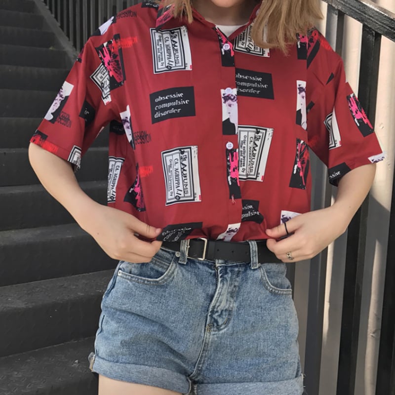 春 夏 レディース シャツ ブラウス ワイシャツ レッド 赤 半袖 トップス かわいい トップス 半袖 襟付きトップス 韓国トップス リゾート 海 プール おしゃれ かわいい 韓国 きれいめ プチプラ SY-5-293 | dress_sugar_moon