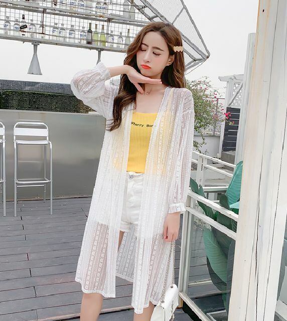 春 夏 レディース レース カーディガン コート ロング丈 透かし 冷房対策 薄手 長袖 羽織り デート リゾート 海 プール かわいい おしゃれ 韓国 きれいめ プチプラ KR-5-139 | dress_sugar_moon