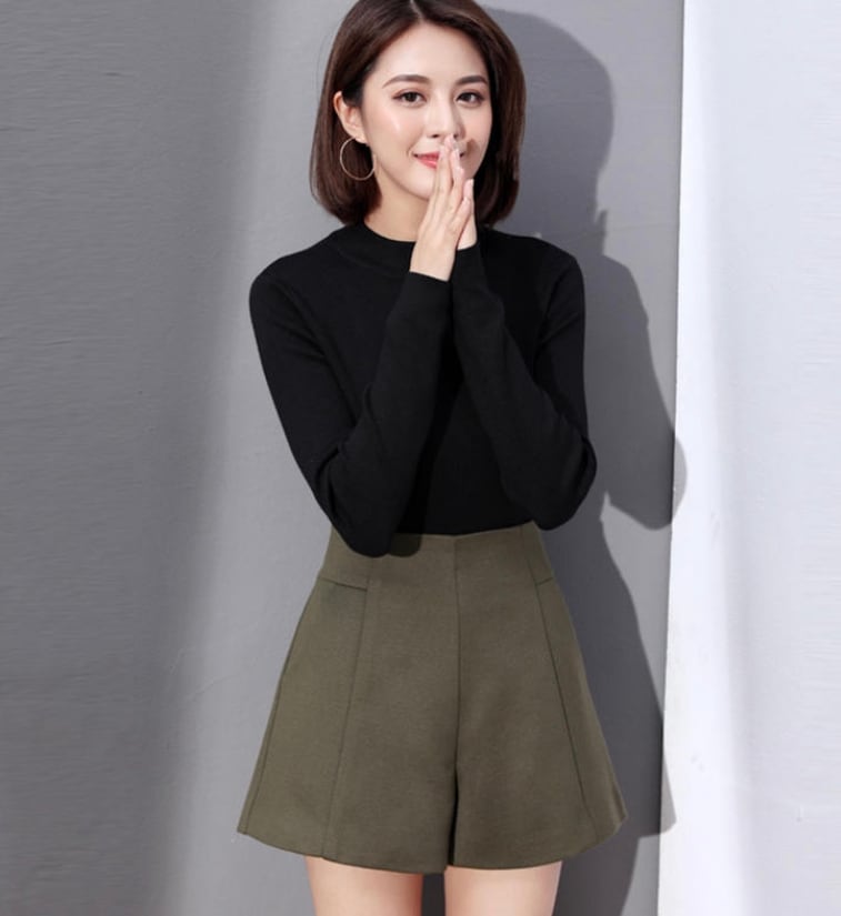 春 夏 レディース パンツ 大きいサイズ ショートパンツ ショーパン 黒 灰 緑 ハイウエスト シンプル トレンド おしゃれ 合わせやすい カジュアル YN-5-155 | dress_sugar_moon