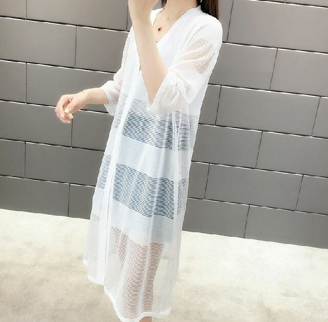 春 夏 レディース カーディガン 大きいサイズ アイスシルクニット ショールコート ロング丈 ストライプ 冷房対策 薄手 長袖 羽織り デート リゾート 海 プール かわいい おしゃれ 韓国 きれいめ プチプラ KR-5-145 | dress_sugar_moon