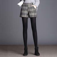 春 夏 レディース ショートパンツ パンツ ハイウエスト 無地 シンプル 格子 チェック おしゃれ トレンド5カラー 黒 茶 灰 灰格子 茶格子 学生 通学 YN-5-163 | dress_sugar_moon