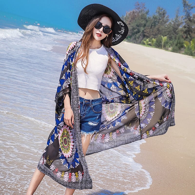 春 夏 レディース アウター カーディガン 夏カーディガン 夏アウター 半袖 エスニック柄 透け感 ブルー 青 リゾート 海 プール おしゃれ かわいい 韓国 きれいめ プチプラ SY-5-296 | dress_sugar_moon