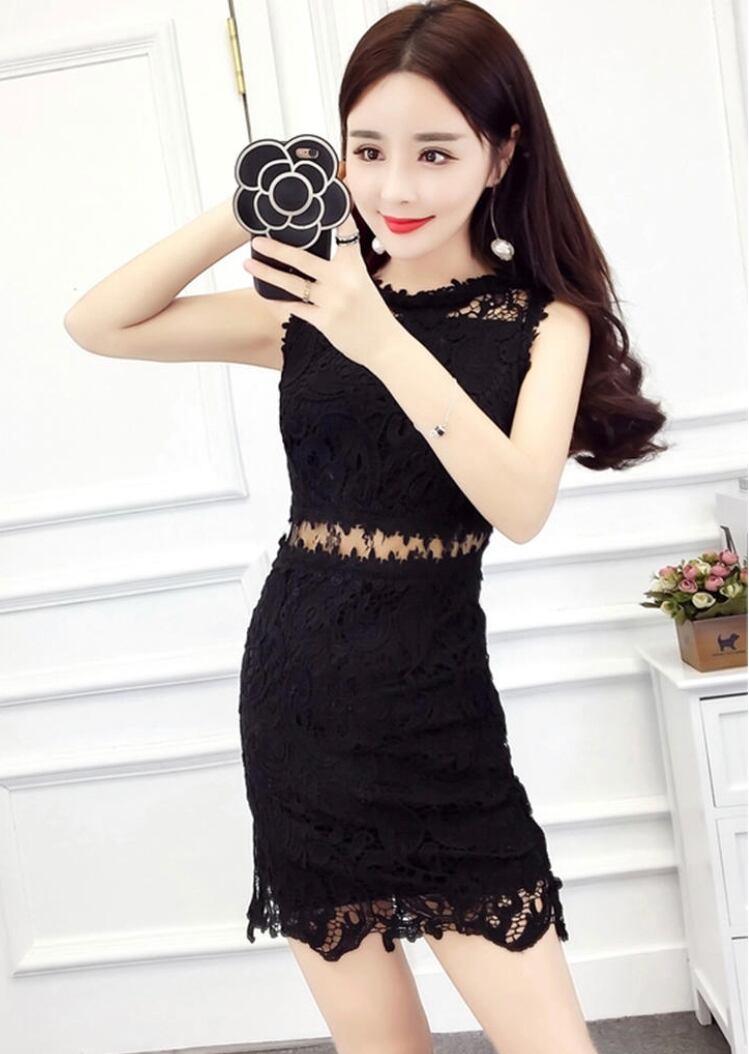 春 夏 レディース ワンピース ミニ丈 花柄 レース 袖なし ノースリーブ 透け 背中レース ウエストレース セクシー パーティー お呼ばれ 結婚式 デート YN-5-166 | dress_sugar_moon