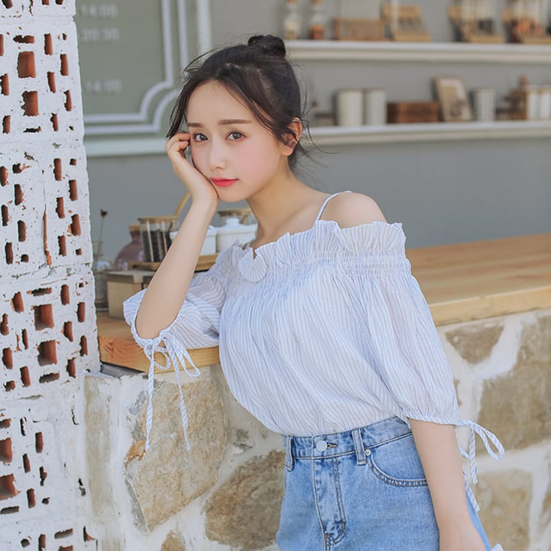 春 夏 レディース シャツブラウス トップス オフショルダー風 キャミソール リボン フリル リゾート 海 プール かわいい おしゃれ 韓国 きれいめ プチプラ FA-1246 | dress_sugar_moon