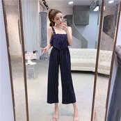 春 夏 レディース オールインワン ノースリーブ 袖なし 2カラー 桃 紺 ストライプ 縦縞 上品 大人 パーティー 結婚式 お呼ばれ 二次会 披露宴 YN-5-184 | dress_sugar_moon
