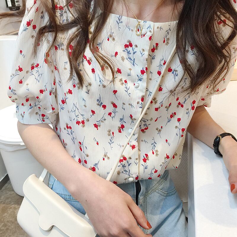 春 夏 レディース シャツブラウス オフィス トップス 花柄 半袖 五分袖 カジュアル シフォン リゾート 海 プール かわいい おしゃれ 韓国 きれいめ プチプラ FA-1249 | dress_sugar_moon