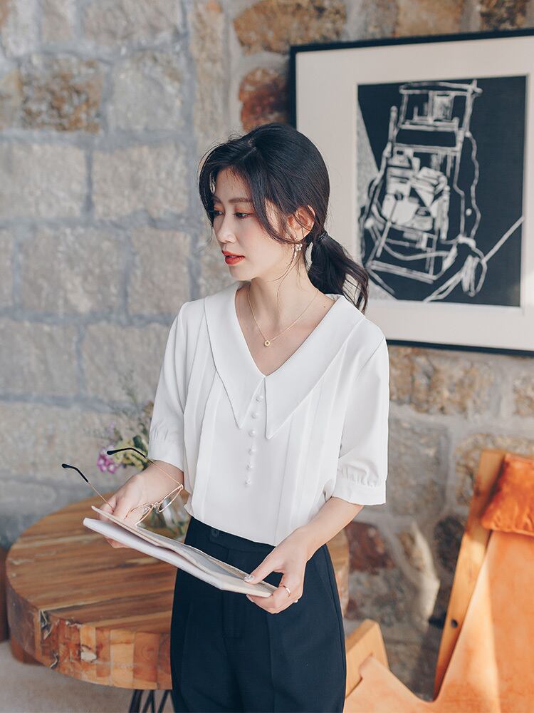 春 夏 レディース シャツブラウス トップス オフィス Tシャツ シンプル カジュアル 半袖 五分袖 リゾート 海 プール かわいい おしゃれ 韓国 きれいめ プチプラ FA-1250 | dress_sugar_moon