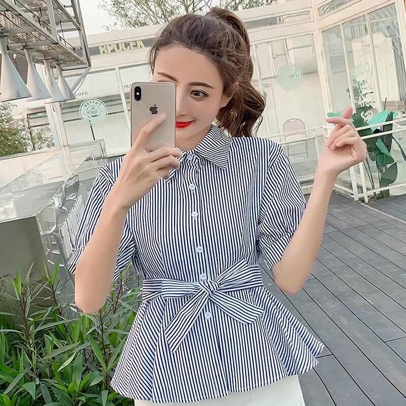 春 夏 レディース シャツ ブラウス 大きいサイズ 背中見せ 着やせ リブニット ウエストリボン 3色 トップス かわいい トップス 大きいサイズ トップス 半袖 襟付きトップス 背中見せトップス へプラムトップス リゾート 海 プール おしゃれ かわいい 韓国 きれいめ プチプラ SY-5-336 | dress_sugar_moon