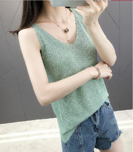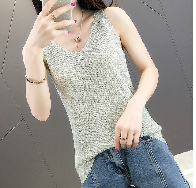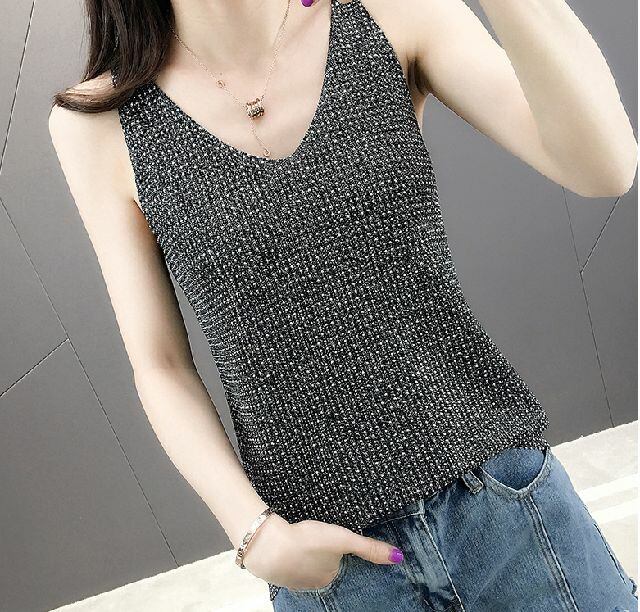 春 夏 レディース タンクトップ キャミソール ノースリーブ Vネック 大きいサイズ アイスシルクニット ストーン デート リゾート 海 プール かわいい おしゃれ 韓国 きれいめ プチプラ KR-5-156 | dress_sugar_moon