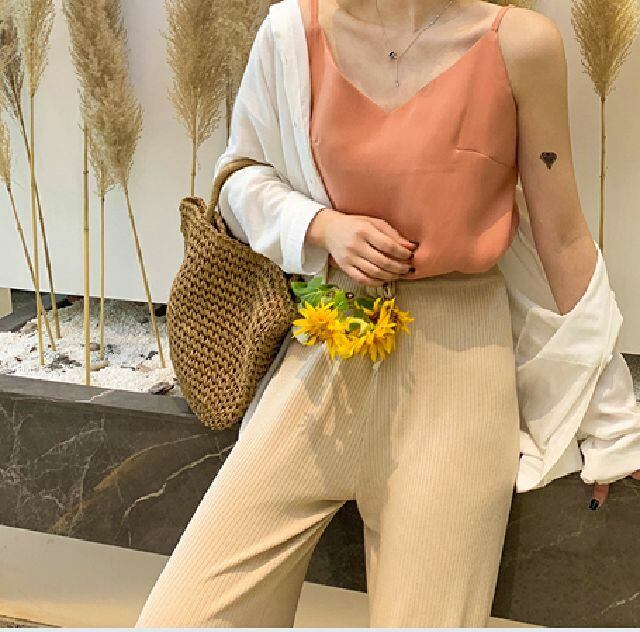 春 夏 レディース タンクトップ キャミソール ノースリーブ 大きいサイズ シフォン Vネック デート リゾート 海 プール かわいい おしゃれ 韓国 きれいめ プチプラ KR-5-166 | dress_sugar_moon