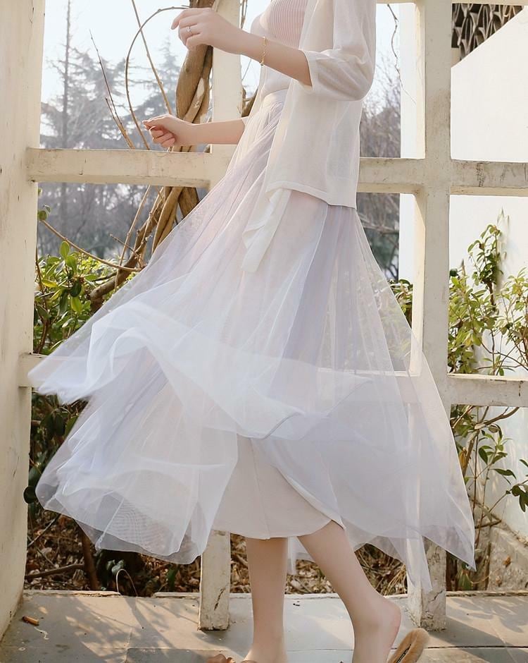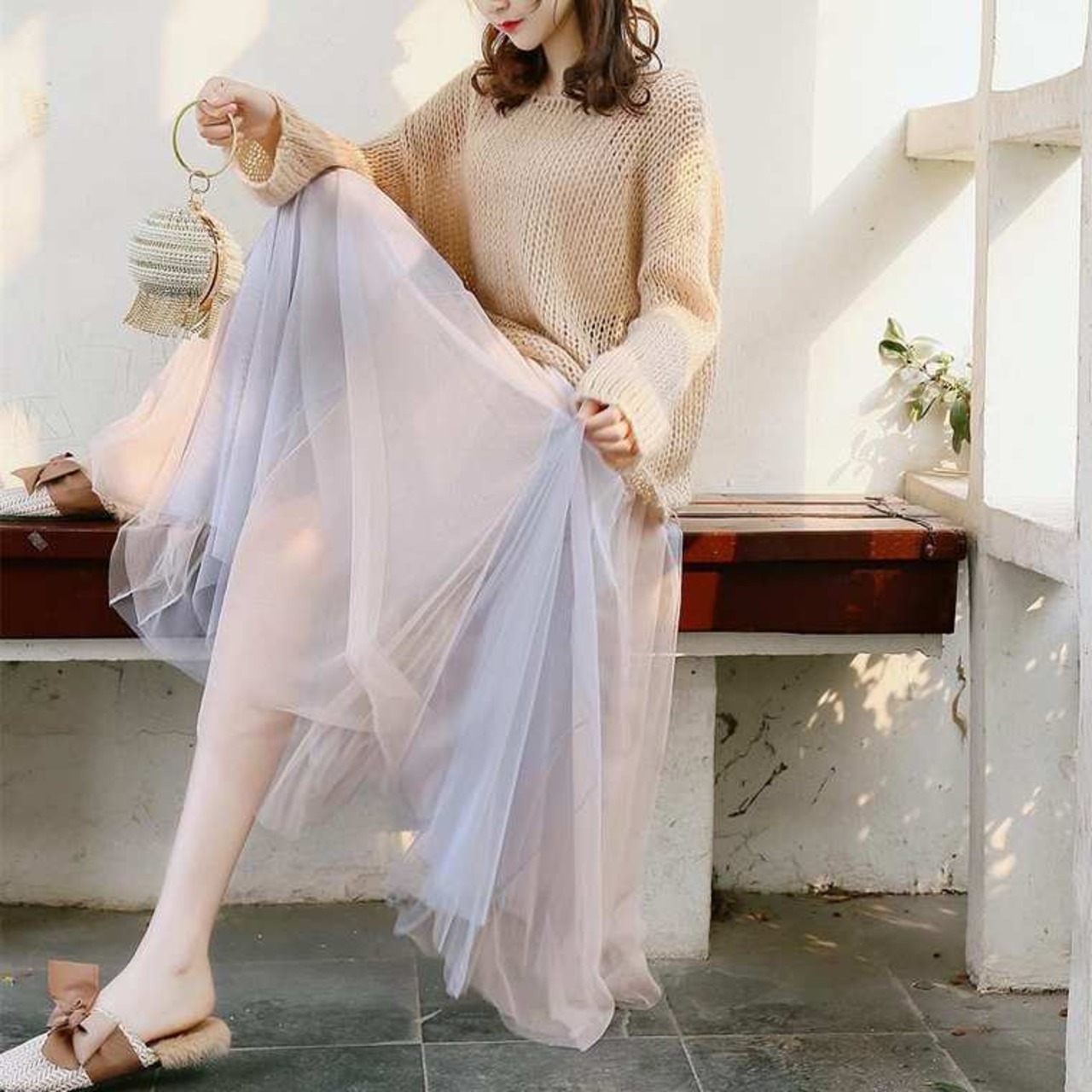 春 夏 レディース スカート ミドル丈 ロング ツートーン 上品 キュート おしゃれ デート おでかけ 通勤 通学 80cm 90cm 100cm YN-5-217 | dress_sugar_moon
