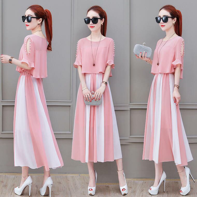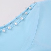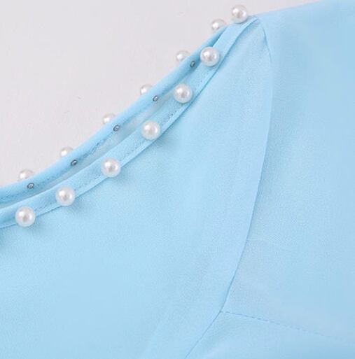 春 夏 レディース ドレス ワンピース ツートーン 3カラー 黒 桃 青 パール 肩開き 半袖 ミドル丈 パーティー 結婚式 二次会 披露宴 フォーマルドレス YN-5-219 | dress_sugar_moon