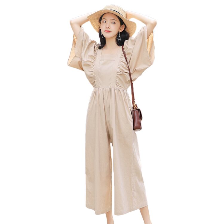 春 夏 レディース オールインワン アプリコット 半袖 ハイウエスト パンツ ワイドパンツ リゾート 海 プール おしゃれ かわいい 韓国 きれいめ プチプラ SY-5-364 | dress_sugar_moon