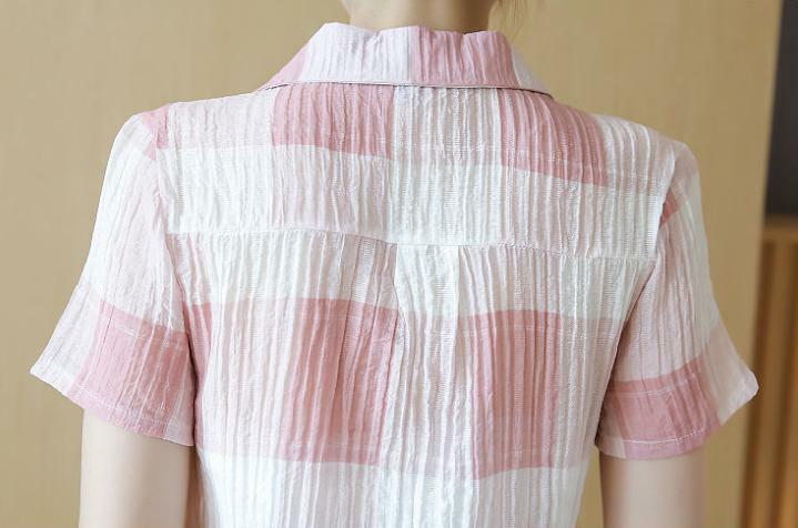 春 夏 レディース シャツブラウス 大きいサイズ トップス 半袖 チェック柄 カジュアル リゾート 海 プール かわいい おしゃれ 韓国 きれいめ プチプラ FA-1276 | dress_sugar_moon