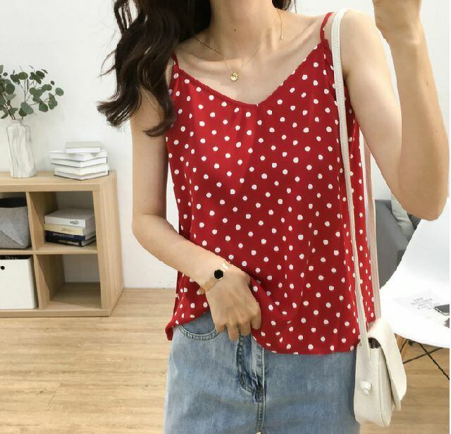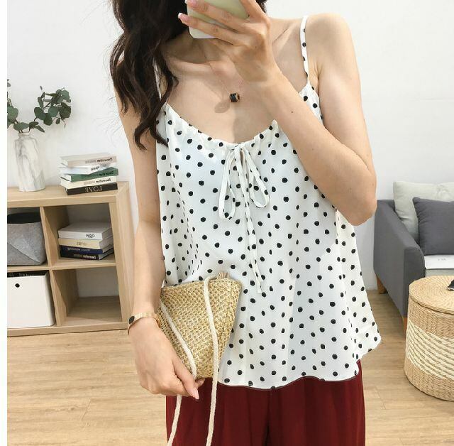 春 夏 レディース トップス かわいい タンクトップ キャミソール ノースリーブ 大きいサイズ Vネック ドット柄 水玉 デート リゾート 海 プール かわいい おしゃれ 韓国 きれいめ プチプラ KR-5-171 | dress_sugar_moon