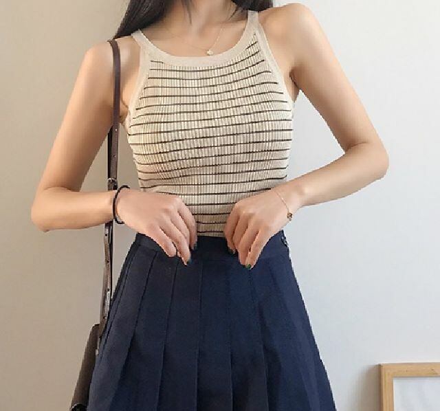 春 夏 レディース トップス かわいい タンクトップ キャミソール ノースリーブ 大きいサイズ ストライプ デート リゾート 海 プール かわいい おしゃれ 韓国 きれいめ プチプラ KR-5-181 | dress_sugar_moon