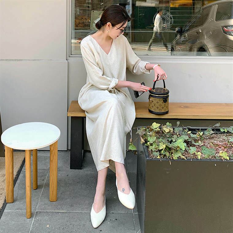 春 夏 レディース ワンピース ロングワンピース ロング丈 シャツ シャツワンピ Vネック ミドル丈 長袖 2カラー カーキ ホワイト おしゃれ きれいめ シンプル デート ママコーデ 体型カバー YN-5-221 | dress_sugar_moon
