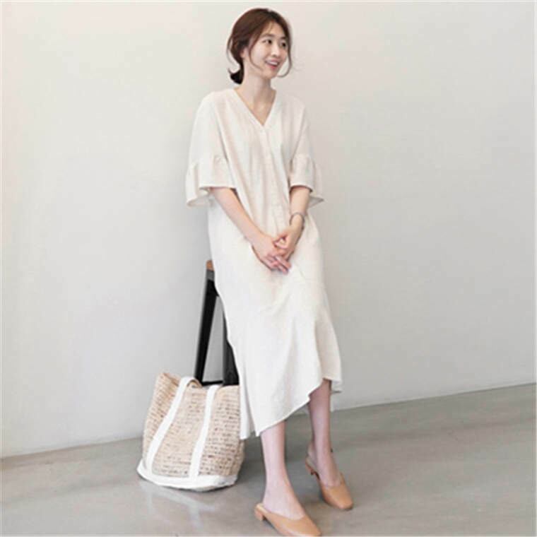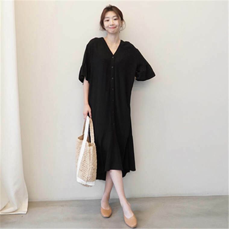 春 夏 レディース ワンピース 黒 ミドル丈 シャツ シャツワンピ 2カラー 白 黒 ボタン 体型カバー ママコーデ ゆったり カジュアル シンプル デート おでかけ お散歩 YN-5-223 | dress_sugar_moon