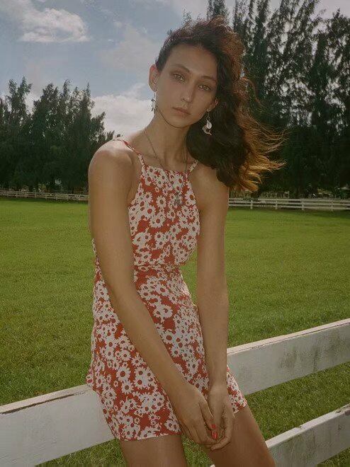 春 夏 レディース ワンピース レッド 赤 花柄 背中見せ 袖なし キャミソール キャミソールワンピース ワンピース ミニ ミニワンピース 花柄ワンピース リゾート 海 プール おしゃれ かわいい 韓国 きれいめ プチプラ SY-5-377 | dress_sugar_moon