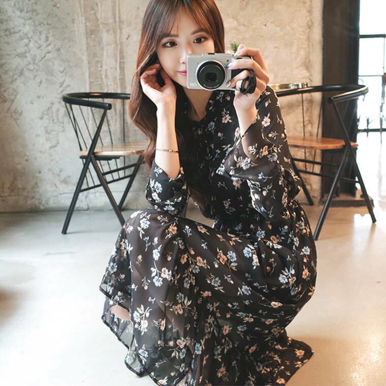 春 夏 レディース ワンピース シャツワンピース 花柄 ラウンドネック フリル 長袖 半袖 ゆったり 体型カバー マタニティ ママコーデ シンプル カジュアル おでかけ おさんぽ デート YN-5-240 | dress_sugar_moon
