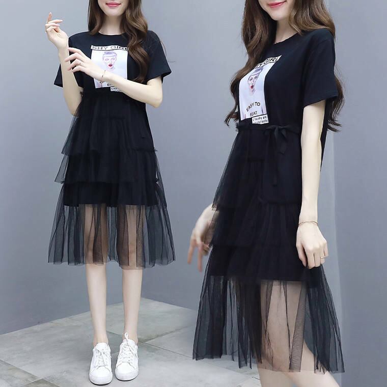 春 夏 レディース ワンピース 大きいサイズ トップス Tシャツ レース 3段レース ケーキスカート ウエストリボン カジュアル おしゃれ デート おでかけ YN-5-246 | dress_sugar_moon