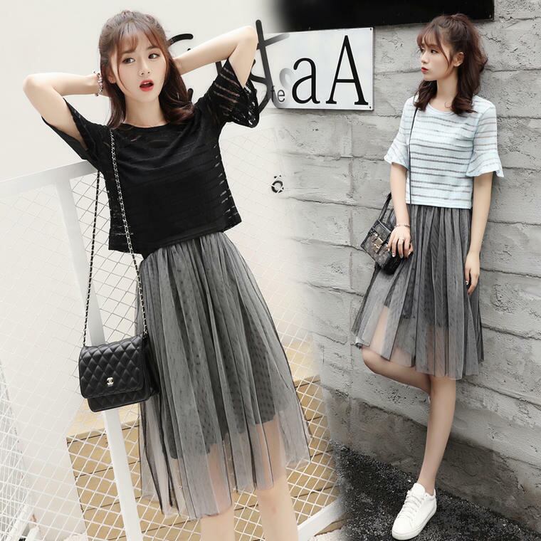 春 夏 レディース ワンピース かわいい すセットアップ 大きいサイズ トップス 半袖 Tシャツ ワンピース レース 透け キャミソール シンプル 簡単コーデ 体型カバー ママコーデ おしゃれ デート おでかけ おさんぽ 上品 YN-5-247 | dress_sugar_moon