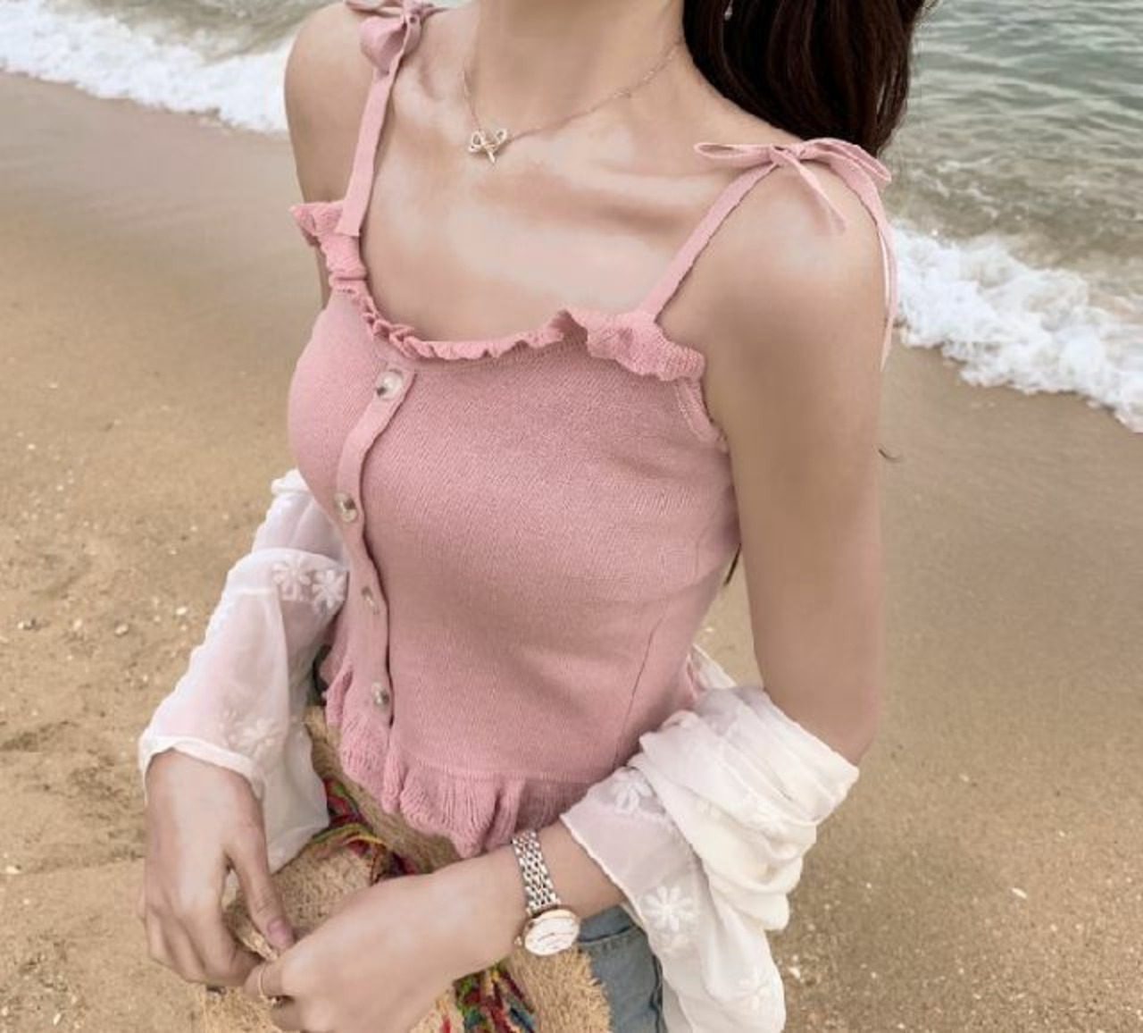 春 夏 レディース トップス かわいい タンクトップ キャミソール 二ット ノースリーブ 大きいサイズ レース デート リゾート 海 プール かわいい おしゃれ 韓国 きれいめ プチプラ KR-5-209 | dress_sugar_moon