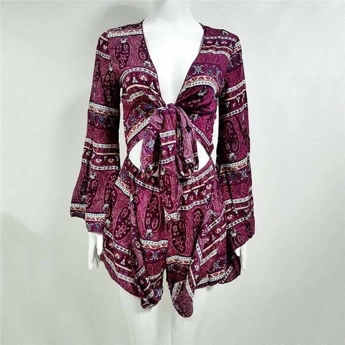 春 夏 レディース オールインワン サロペット 大きいサイズ 2色 エスニック柄 長袖 Vネック ショートパンツ お腹見せ へそ出し オールインワンパンツ リゾート 海 プール おしゃれ かわいい 韓国 きれいめ プチプラ SY-6-8 | dress_sugar_moon