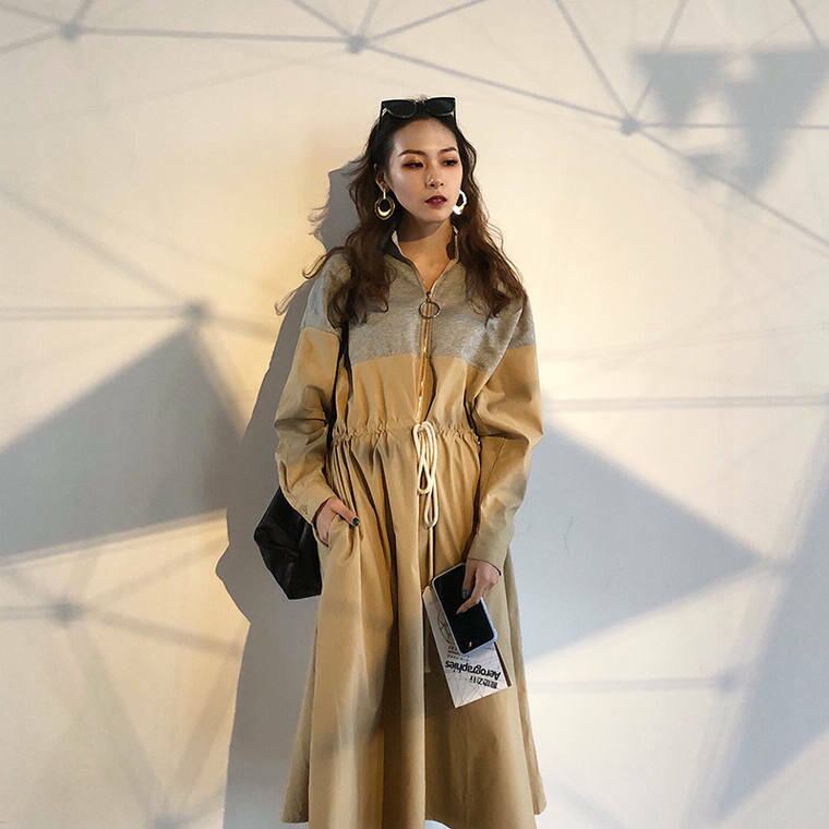 春 夏 レディース ワンピース ツートーン バイカラー マウンテンパーカー風 2way 黒 ベージュ おしゃれ 可愛い 韓国 学生 キャンパス ママコーデ 体型カバー YN-6-11 | dress_sugar_moon