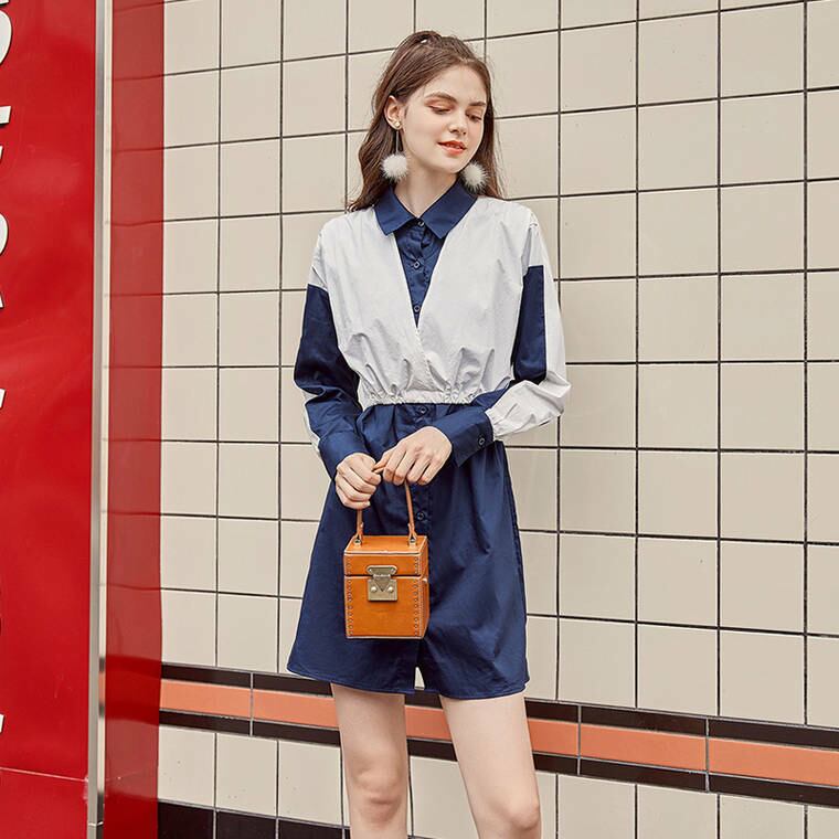 春 夏 レディース 膝上 ミニ 重ね着風ワンピース マウンテンパーカー風 ワンピース ウエストリボン ワンカラー ツートーン 学生 キャンパス 通学 韓国 おしゃれ 可愛い YN-6-18 | dress_sugar_moon