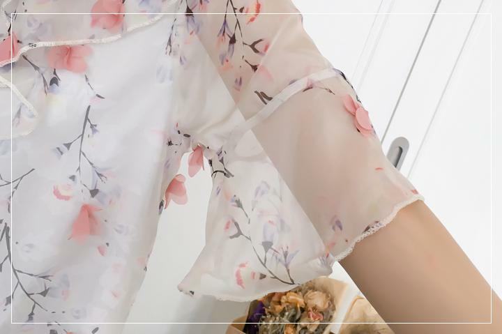 春 夏 レディース シャツブラウス トップス 花柄 半袖 シフォンシャツ リボンタイ きれいめ フリル リゾート 海 プール かわいい おしゃれ 韓国 きれいめ プチプラ FA-1295 | dress_sugar_moon