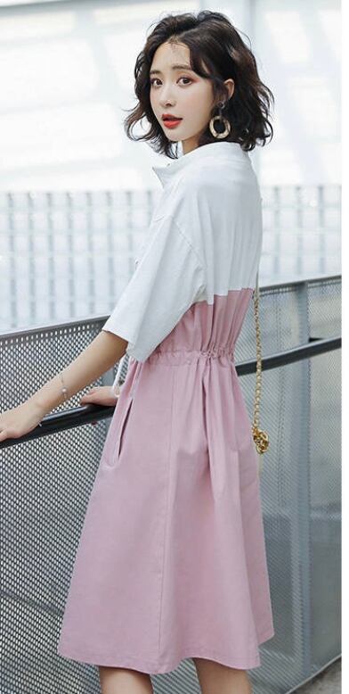 春 夏 レディース ワンピース 膝丈 マウンテンパーカー風 パステル 可愛い おしゃれ 韓国 学生 キャンパス 体型カバー ママコーデ 桃 黄 青 YN-6-20 | dress_sugar_moon