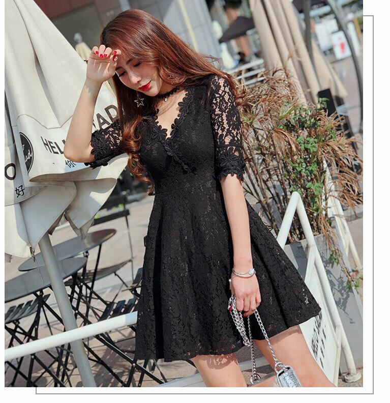 春 夏 レディース ワンピースドレス 大きいサイズ 3色 七分丈 レース 花柄 透け感 Aライン Vネック ワンピース ミニ ミニワンピース リゾート 海 プール おしゃれ かわいい きれいめ プチプラ SY-6-40 | dress_sugar_moon