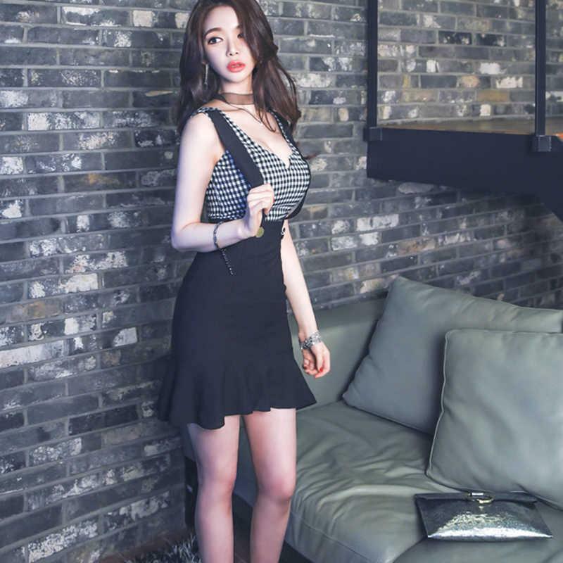 春 夏 レディース ワンピース 黒 ブラック チェック柄 袖なし ノースリーブ バイカラー タイト ワンピース ミニ ミニワンピース タイトワンピース リゾート 海 プール おしゃれ かわいい 韓国 きれいめ プチプラ SY-6-41 | dress_sugar_moon