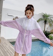 春 夏 レディース ワンピース アウター 膝上 ツートーン マウンテンパーカー風 可愛い おしゃれ 韓国 学生 キャンパス 体型カバー ママコーデ イエロー パープル YN-6-29 | dress_sugar_moon