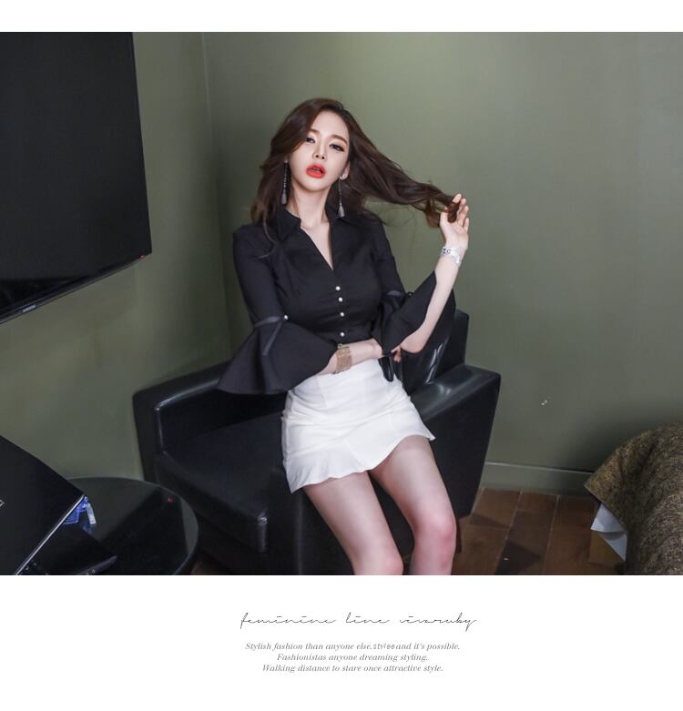 春 夏 レディース シャツ ブラウス 大きいサイズ オフィス ブラック 黒 トップス 大きいサイズ トップス オフィス シャツブラウス オフィス トップス 七分丈 リゾート 海 プール おしゃれ かわいい 韓国 きれいめ プチプラ SY-6-78 | dress_sugar_moon