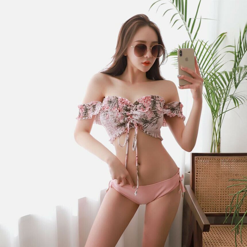 夏 レディース 水着 大きいサイズ ビキニ 花柄 セクシー オフショルダー リボン リゾート 海 プール かわいい おしゃれ 韓国 きれいめ プチプラ FA-1301 | dress_sugar_moon