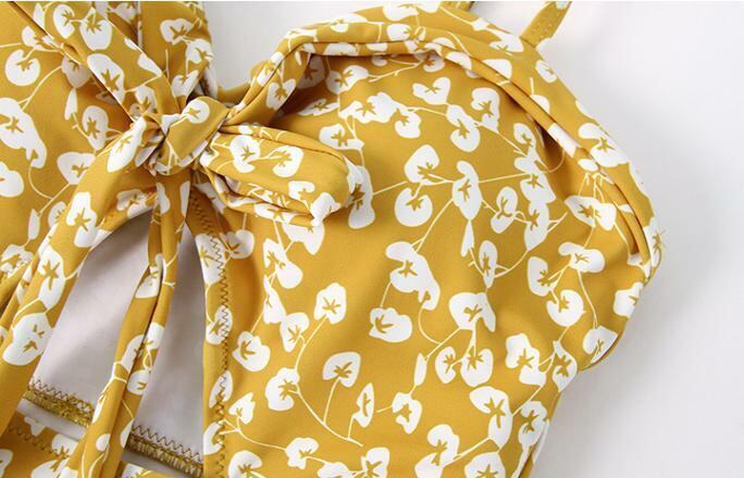 夏 レディース 水着 大きいサイズ ワンピースタイプ 花柄 黄色 イエロー フロントリボン カジュアル リゾート 海 プール かわいい おしゃれ 韓国 きれいめ プチプラ FA-1308 | dress_sugar_moon