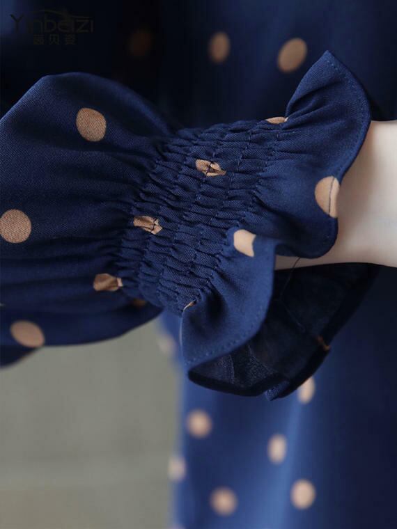 春 夏 レディース シャツ ブラウス 大きいサイズ トップス ドット柄 水玉 リボンタイ ボウタイ Vネック 袖コンシャス 袖コン 通勤 通学 学生 キャンパス お出かけ デート YN-6-52 | dress_sugar_moon