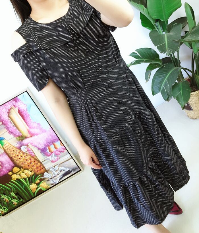 春 夏 レディース ワンピース 大きいサイズ ブラック 半袖 肩見せ オフショル ドット ロング丈 ワンピース ロング丈 ロングワンピース リゾート 海 プール おしゃれ かわいい 韓国 きれいめ プチプラ SY-6-127 | dress_sugar_moon