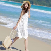 春 夏 レディース ワンピース 大きいサイズ ホワイト 白 袖なし ノースリーブ キャミソール ロング丈 ロングワンピース リゾート 海 プール おしゃれ かわいい 韓国 きれいめ プチプラ SY-6-146 | dress_sugar_moon