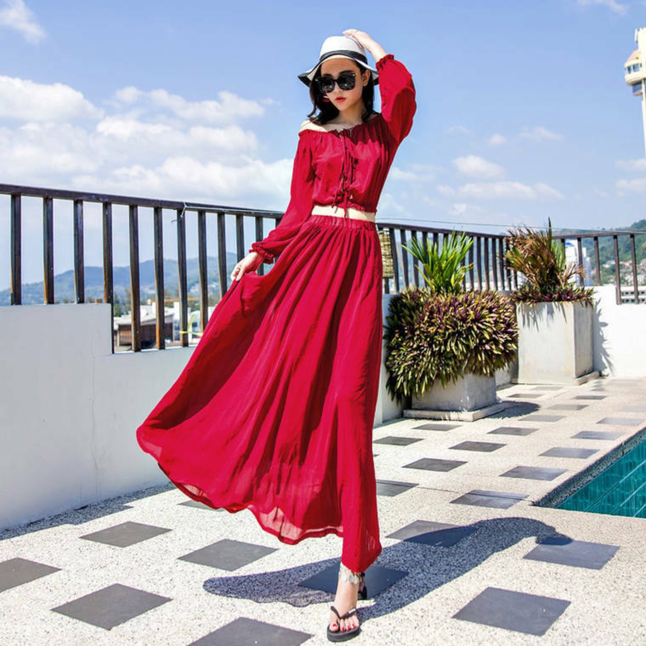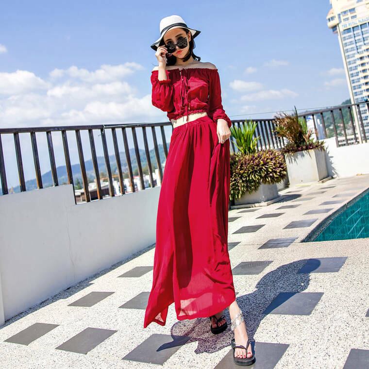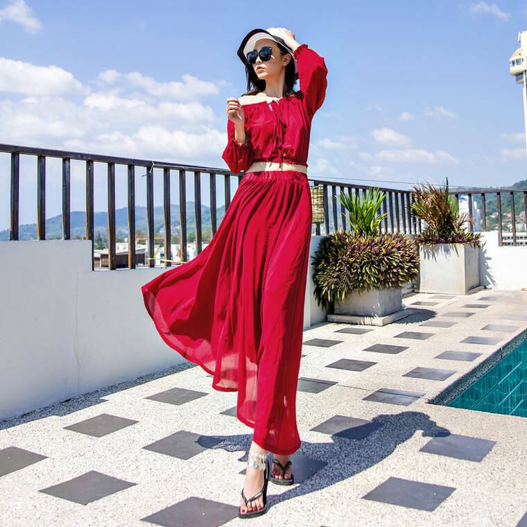 春 夏 レディース ワンピース トップス スカート ツーピース セットアップ 長袖 ロング丈 オフショルダー 肩出し おしゃれ セクシー 紫外線防止 日焼け防止 透け 海 リゾート プール YN-6-107 | dress_sugar_moon