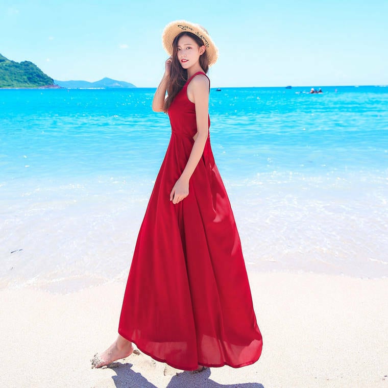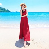 春 夏 レディース ワンピース ノースリーブ 袖なし ノースリーブワンピース 背中あき セクシー 可愛い キュート きれいめ ロング丈 リボン 海 リゾート YN-6-108 | dress_sugar_moon