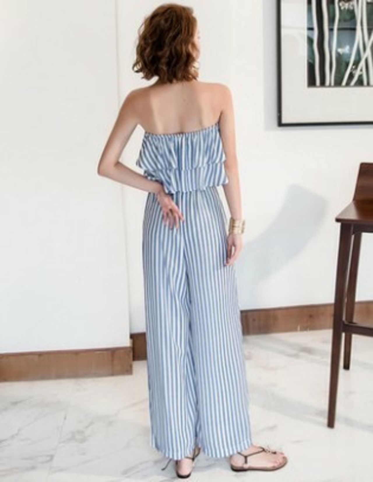 春 夏 レディース オールインワン サロペット 肩見せ オフショル ハイウエスト パンツ ストライプ ブルー 青 リゾート 海 プール おしゃれ かわいい 韓国 きれいめ プチプラ SY-6-268 | dress_sugar_moon