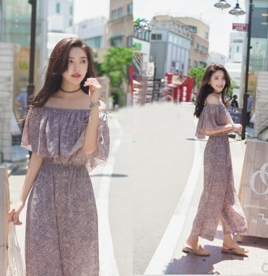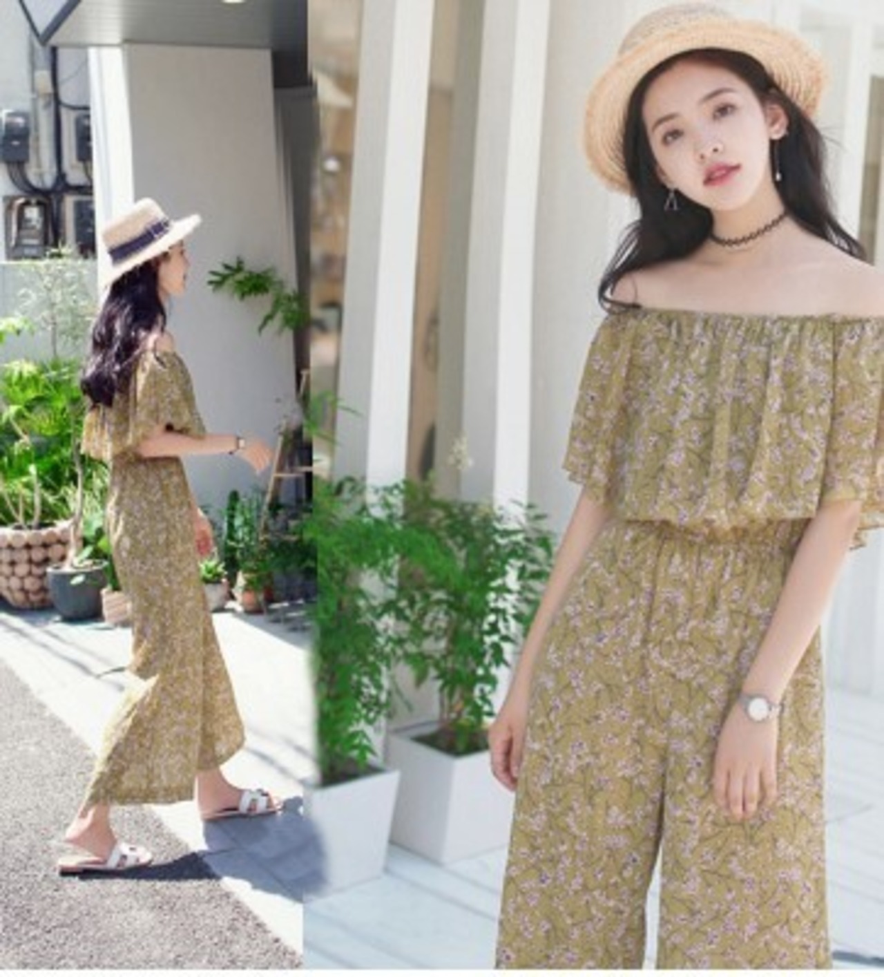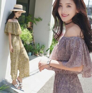 春 夏 レディース オールインワン サロペット 大きいサイズ 2色 肩見せ オフショル 半袖 ハイウエスト パンツ リゾート 海 プール おしゃれ かわいい 韓国 きれいめ プチプラ SY-6-270 | dress_sugar_moon