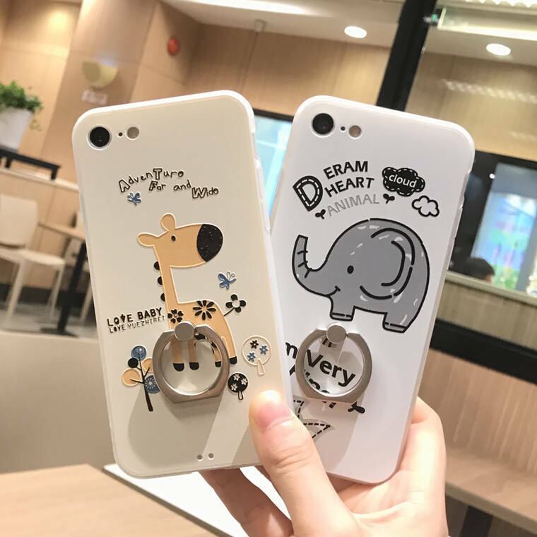 iPhone ケース カバー スマホケース ゾウ キリン 動物 可愛い キュート おしゃれ リング付き 落下防止 スマホスタンド 6 6plus 7 7plus YN-6-155 | dress_sugar_moon
