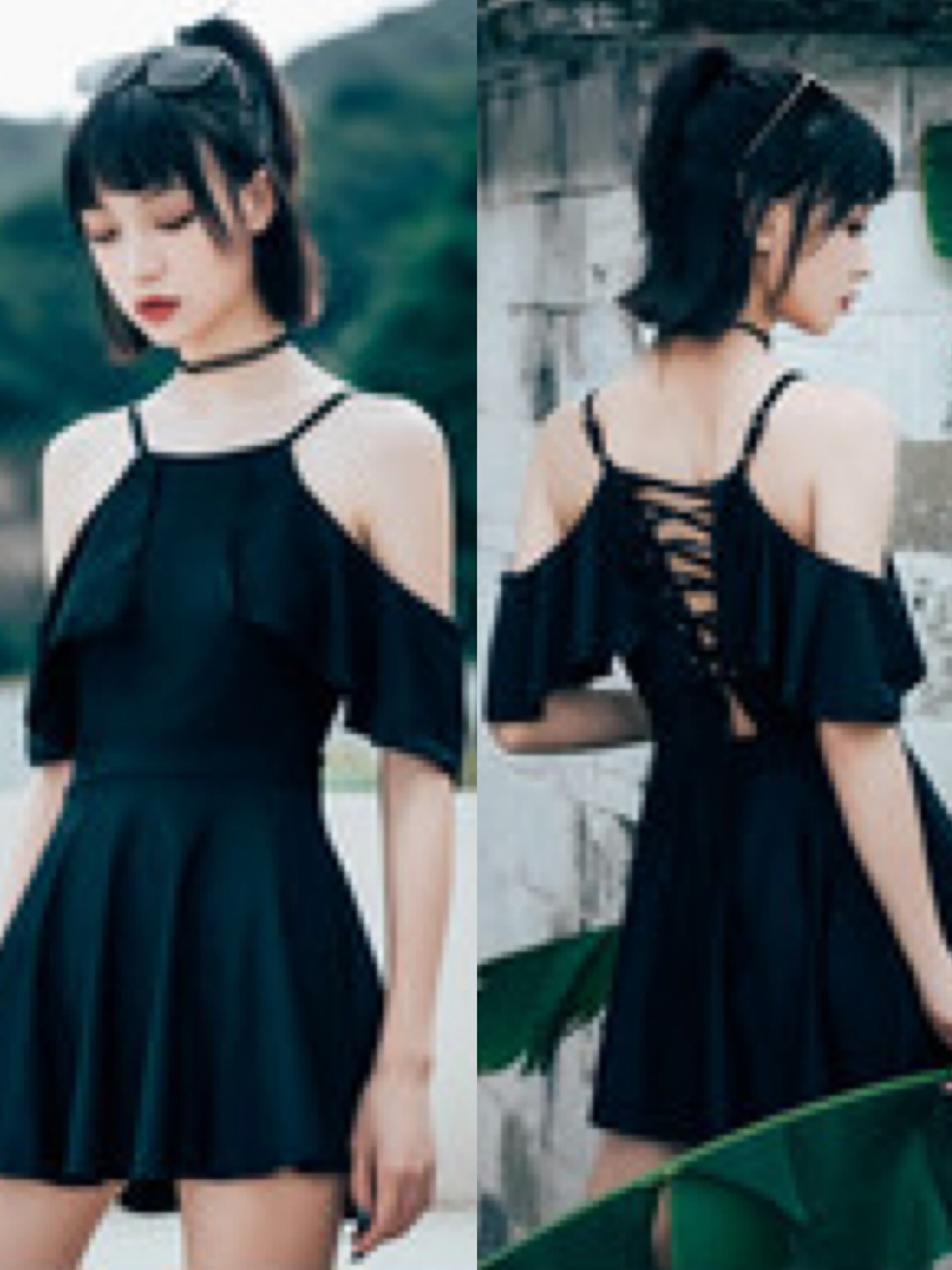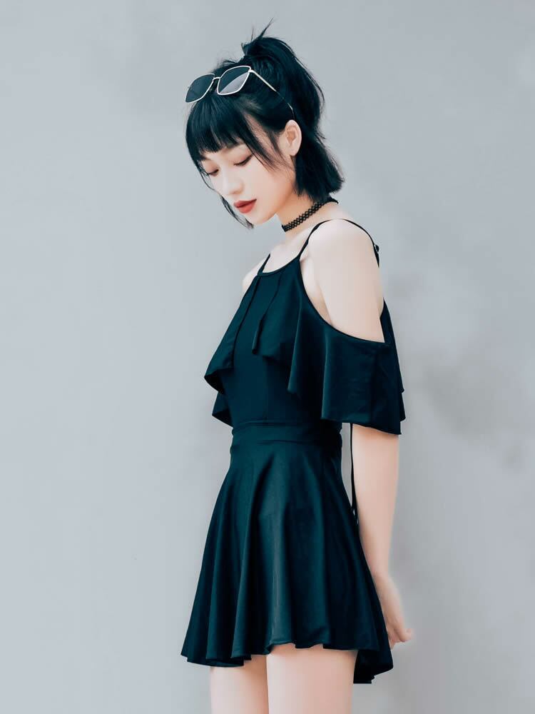 夏 レディース 水着 大きいサイズ ホルターネック ワンピース水着 オフショルダー ブラック 黒 セクシー スリム リゾート 海 プール かわいい おしゃれ 韓国 きれいめ プチプラ FA-1342 | dress_sugar_moon
